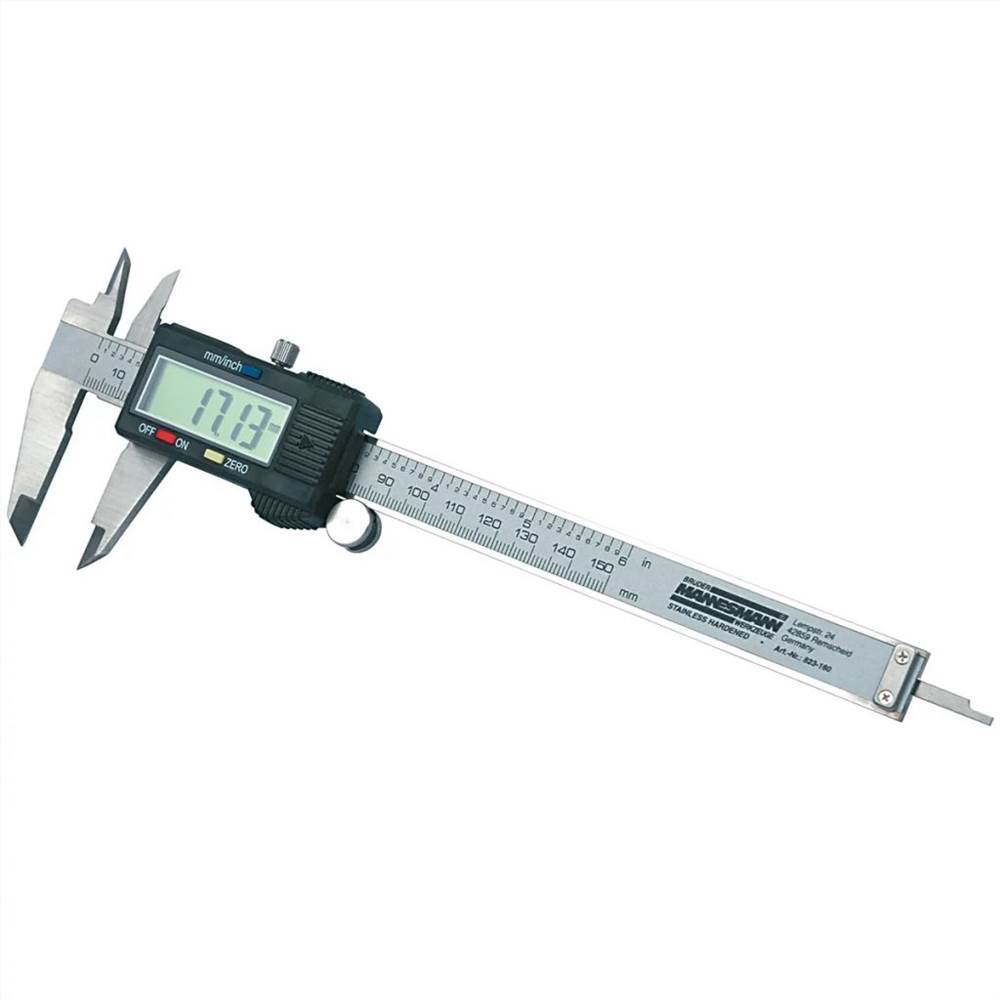 The electronic vernier caliper with digital read-out from Brüder Mannesmann is perfect for tasks where extremely accurate measurements are needed. This digital caliper, which measures in both mm and inches, is equipped with a large LCD display with 5 positions, depth sensor, locking screw and automatic shutdown.The Brüder Mannesmann digital vernier caliper has a measuring range between 0 and 150 mm, with a precision of 0.02 mm.