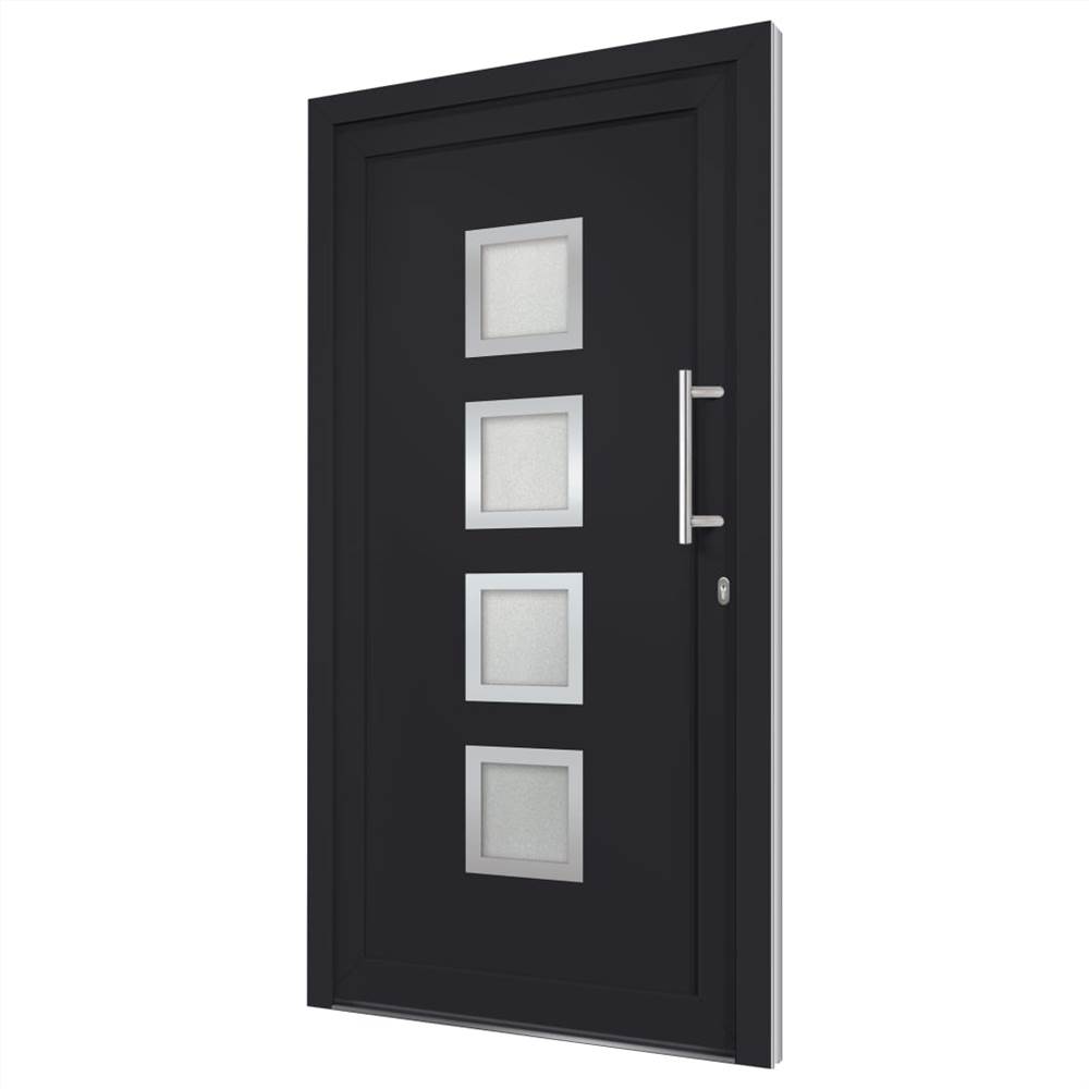 This front door not only enriches the entrance area of your house, but also ensures more security for your home. It combines elegant design with excellent technical properties for our customer who is looking for the right door in sizes 98 x 190 cm (W x H). Our entrance door is equipped with quality frame and filling, aluminium threshold, 3d adjustable hinges (3 hinges per door), 5 mushroom-head locks, insulating glazing and 1,2 mm steel reinforcement. Additionally, the aluminium entry door will impress you with the robust quality and high locking convenience. You will have a whole kit since the stainless steel pull handle and the inside handle are included, as well as the profile cylinder, keys, sealing tape and assembly set.