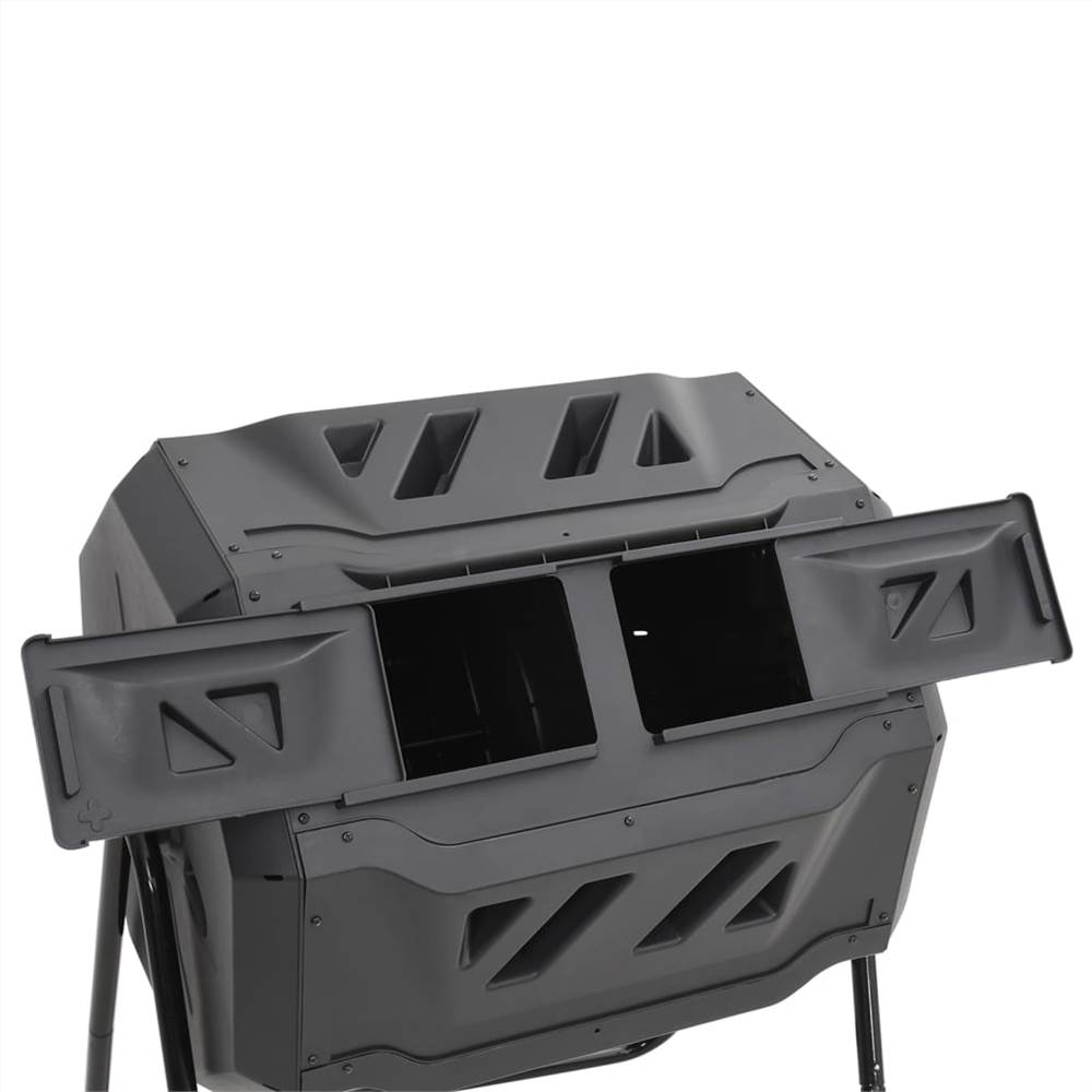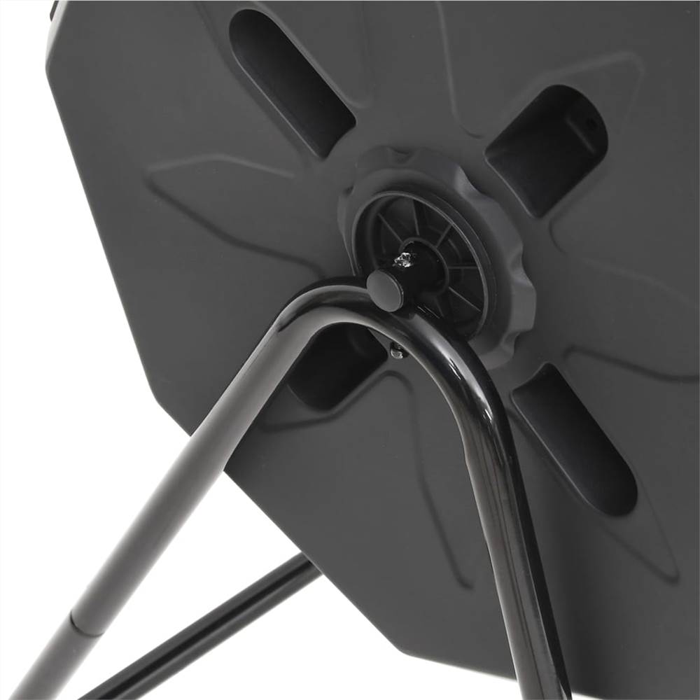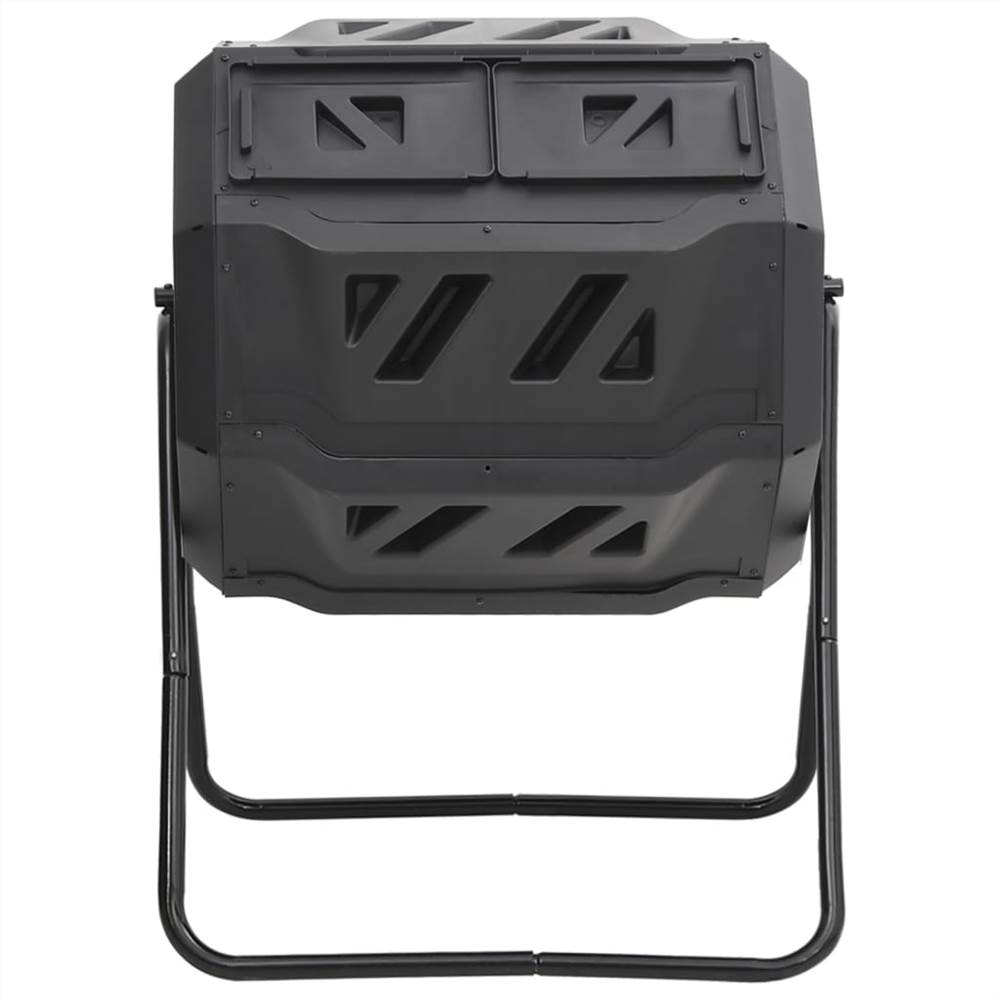 This garden compost bin helps to hasten the decomposition of organic matter and prepare fertiliser on your own. Effortless use: Simply fill the bin with garden and kitchen waste and spin it a few times every day. Thanks to the 360 degrees rotating design, you do not have to move the compost independently.Practicable design: The composter bin with two separate chambers is very convenient. While on one side the decomposition is already happening, new material can be refilled on the other side. Efficient ventilation: The ventilation holes and deep grooves make it easier to move the compost with air, as well as crushing lumps into place. The black barrel absorbs heat well, which contributes to the process.Excellent choice: With a bin, you can speed up decomposition. Composter can also have the advantage of making it harder for rats to get at your compost.