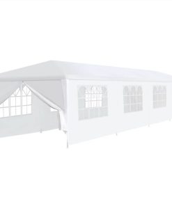 This garden marquee is a wonderful place to entertain your family and friends at all sorts of outdoor parties and get-togethers. You can also install it in your backyard as a large sunshade for your family and guests. Made of 100% polyethylene material, the party tent is UV resistant and water resistant. The marquee has 8 removable side panels, each with decorative windows, and 2 door panels with zips for easy entrance. This frame is manufactured from rust-resistant steel and thus highly durable. Assembly is easy. Please note that we recommend treating the canopy with a waterproof spray if the marquee is subjected to heavy rainfall. NOTE: This product should NEVER be used under bad weather, such as strong wind, heavy rain, snow, storm, etc.