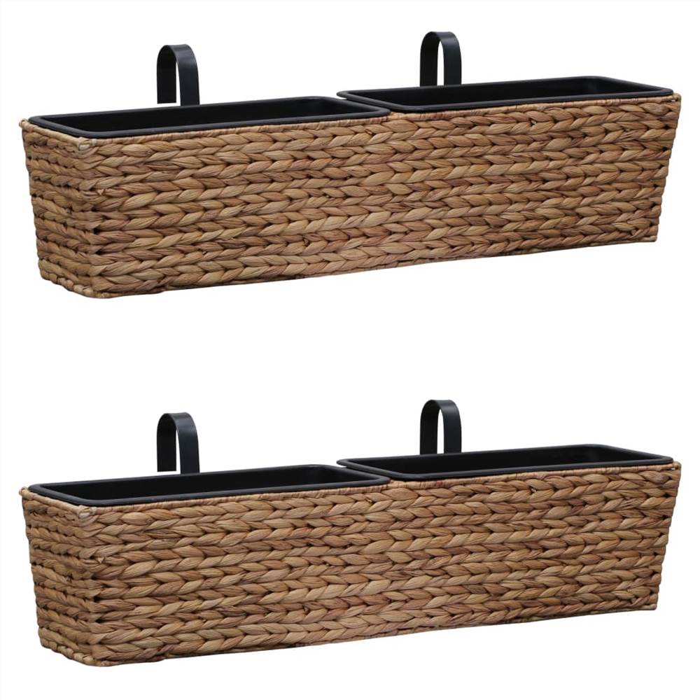 This adorable garden planter set consists of 2 water hyacinth planters and 4 removable pots. Made of highly durable water hyacinth, this planter will be a real attention-grabbing addition to your outdoor space. They will fit most of your windowsills or balcony railings. Its tight weaving structure and two metal holders produce a smooth finish and great stability. Additionally, equipped with 2 plastic containers inside, this planter set will ensure a long service life. All kinds of lively green plants and flowers can be well placed into the pots. Get ready to have some fresh air from your garden, terrace and balcony with our glamorous planters! Delivery includes 2 planters with 4 removable pots.