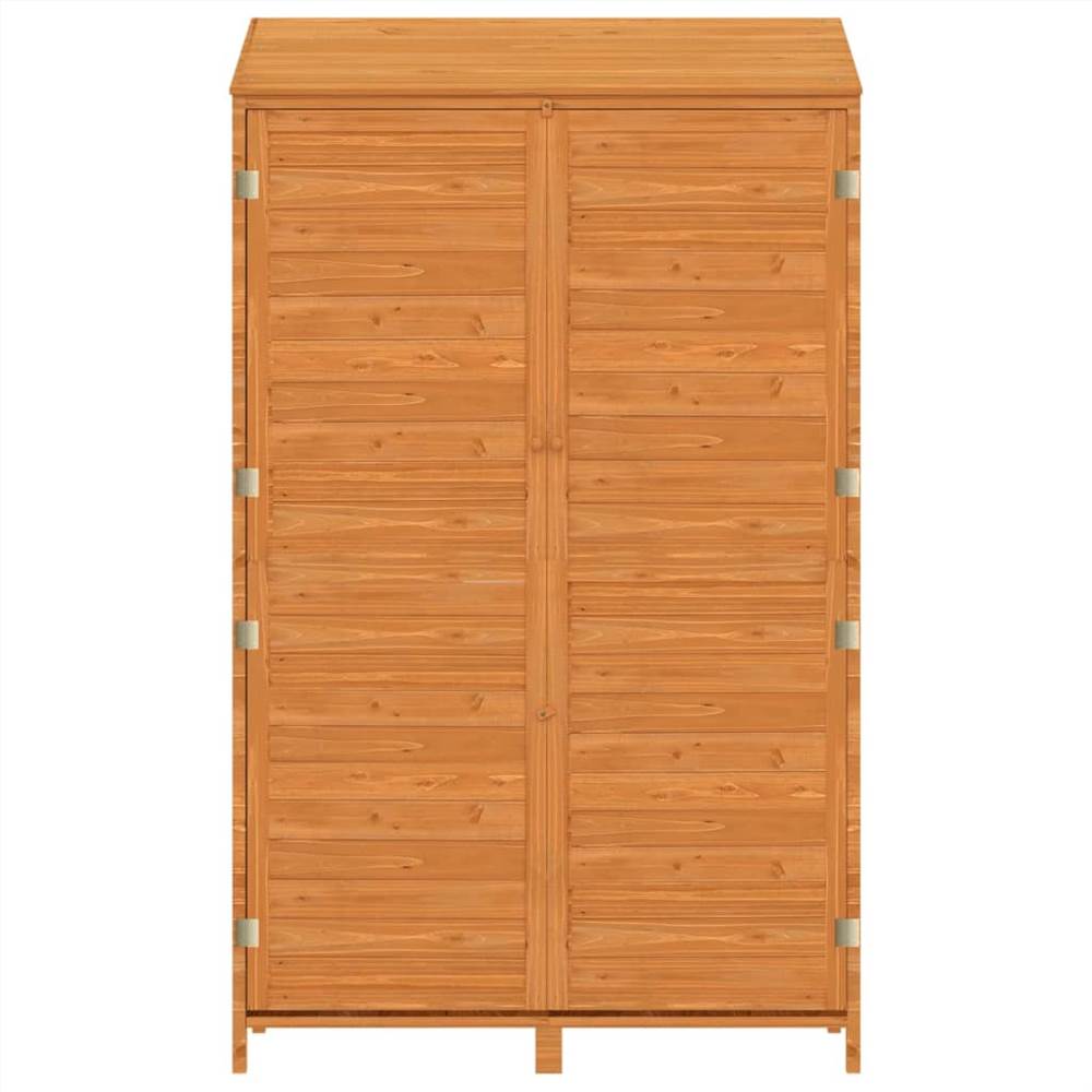 This wooden garden shed makes a great addition to any backyard, lawn, and other outdoor space. Solid fir wood: Solid fir wood is a beautiful natural material. Fir wood doesn’t dry out or warp when exposed to moisture.Ample storage space: The outdoor storage shed is ideal for holding various garden tools, lawn care equipment, household items, and other garden accessoriesSturdy frame: The wooden frames ensure sturdiness and stability. The garden shed offers protection from dirt, dust, strong wind and harsh weather. Warning:In order to prevent overturning, this product must be used with the wall attachment device provided.