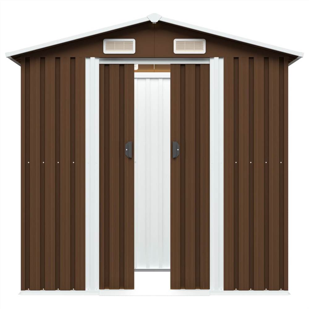 This metal storage shed will be perfect for storing a wide variety of tools and equipment. This storage shed is equipped with vents, ensuring excellent ventilation and reduce the accumulation of moisture and odor in the house. The double sliding doors in the front allow easy entry and exit. Thanks to corrosion-resistant galvanised steel, the tool shed is sturdy and durable, and built to last. It also includes a steel foundation which adds extra stability. The pre-cut, pre-drilled parts and the included instruction manual will help achieve fast and easy assembly.