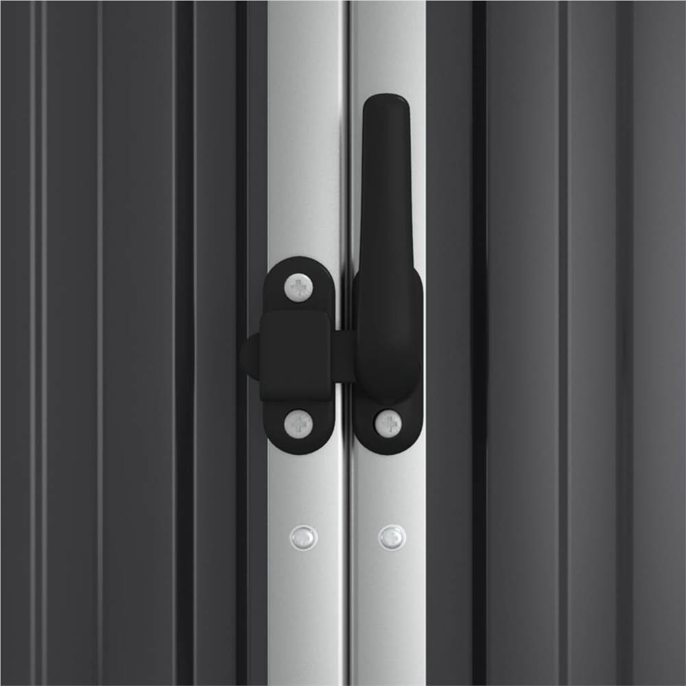 This garden tool shed is a valuable storage space for keeping your garden tools and accessories organised and within easy reach. Large and organised space: This tool shed is perfectly designed for various garden tools, lawn care equipment, pool supplies, and long-handled tools such as brooms, rakes, etc.Premium material: The galvanised steel and metal frames ensure sturdiness and stability. And the storage house requires minimal maintenance.Good security: The plastic handle with a lock function ensures the safety of your item.Sloping design: The rainwater automatically drains from the roof.