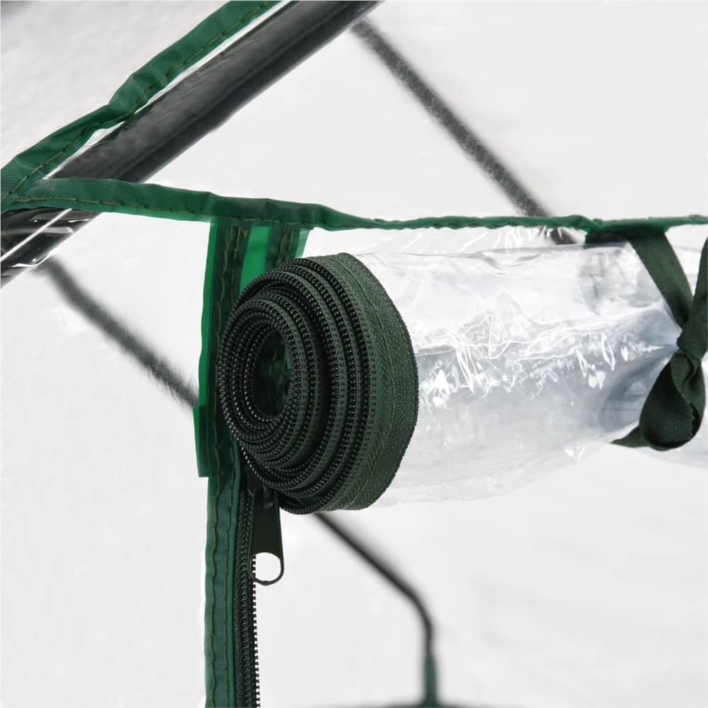 Extend your growing season with our greenhouse. It is ideal for both new and experience gardeners! This greenhouse is structured with rust-resistant sturdy steel frame and PVC film, which ensures superior durability and for long-lasting use. Constructed with 8 wired shelves (4 on each side), this greenhouse provides ample space for your sprouting plants, blooming flowers and fresh herbs and vegetables. The transparent plastic cover allows sunlight to reach the flowers and plants, also you can monitor your plants all the time. Designed with zippered roll-up door, it ensures well air circulation and easy access to your plants. The greenhouse is easy to set up or take down with no special tools required and easy to move and store when season shifts.