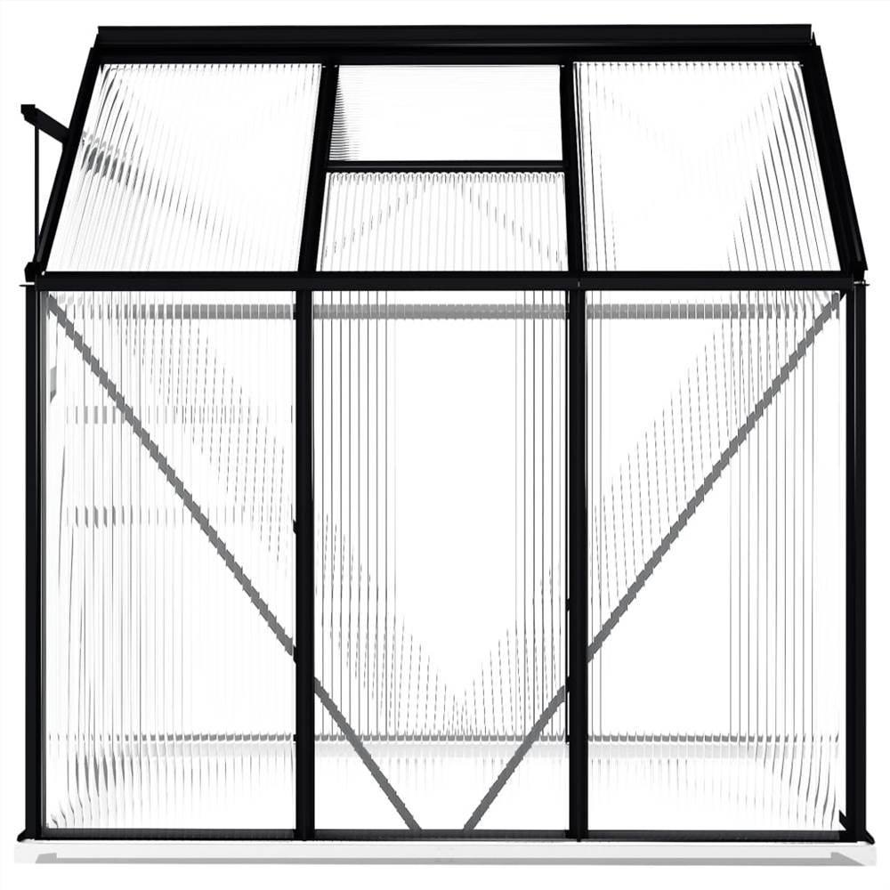 This spacious greenhouse has a capacity of 6.029 m³. It can accommodate a considerable number of plants, and will be a great solution for protecting your plants from the cold weather. Made of polycarbonate panels, this solid greenhouse is UV resistant and thermally insulated. The greenhouse has a sturdy and maintenance-free aluminum construction with a base frame (made up of 4 strong profiles) for extra stability. The gutter system effectively allows water drainage, and the roof vent ensures optimal ventilation on hot days. Roof panels are fixed with metal clips, ensuring its durability and long-term use. Our greenhouse is easy to assemble. Please note the roof of our greenhouse cannot withstand heavy snowfall.