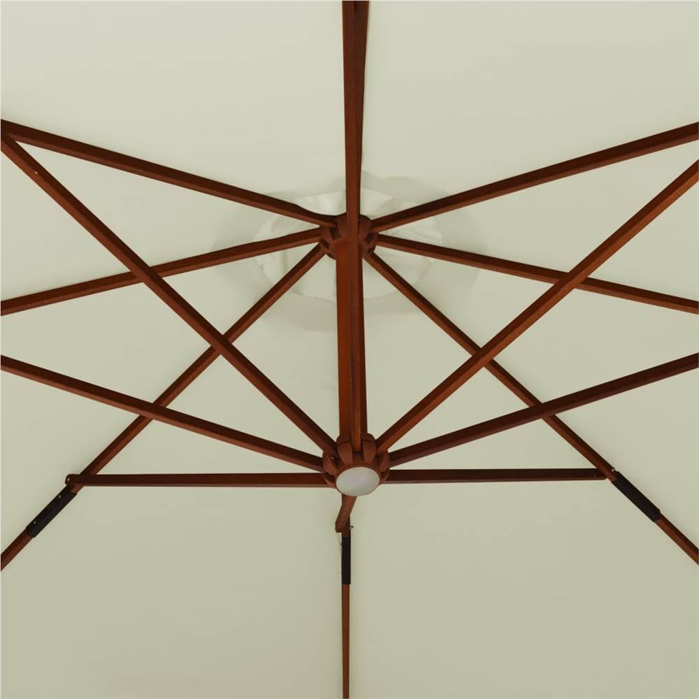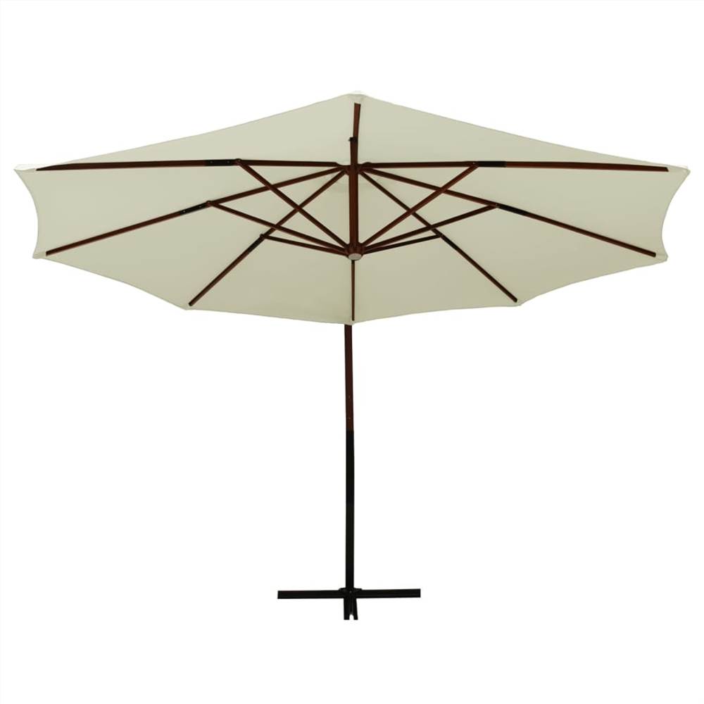 This trendy hanging parasol is perfect for creating some shade, making it a must when you enjoy your outdoor time. Premium material: Made of UV protective and water-resistant polyester, the parasol cover provides you with optimum protection against the sun and moisture.Stable frame: The garden parasol features a sturdy cross base to add stability. The strong solid hardwood pole, along with the 8 durable ribs, makes this garden parasol very stable and durable.Convenient operation: This garden umbrella is equipped with crank mechanism for open and close system. A hand-crank lift system allows you to adjust the shade and block the sun at all angles easily, keeping cool and comfortable.