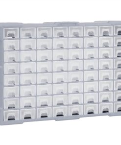 This must-have multi-drawer organiser with totally 64 drawers is designed for neatly storing a wide variety of items. It can also be used as a sewing or nail box. This storage unit contains 64 small drawers, which keeps your hand tools and accessories like fasteners organised and within reach. The tool cabinet is made of impact-resistant plastic, which is both durable and stable. The drawers are made of see-through plastic so that you can quickly identify the contents. This craft box is ideal for storing nuts, bolts, screws, nails, general fixings and components. This item can be wall mounted and it can also be used individually as a tool organiser.
