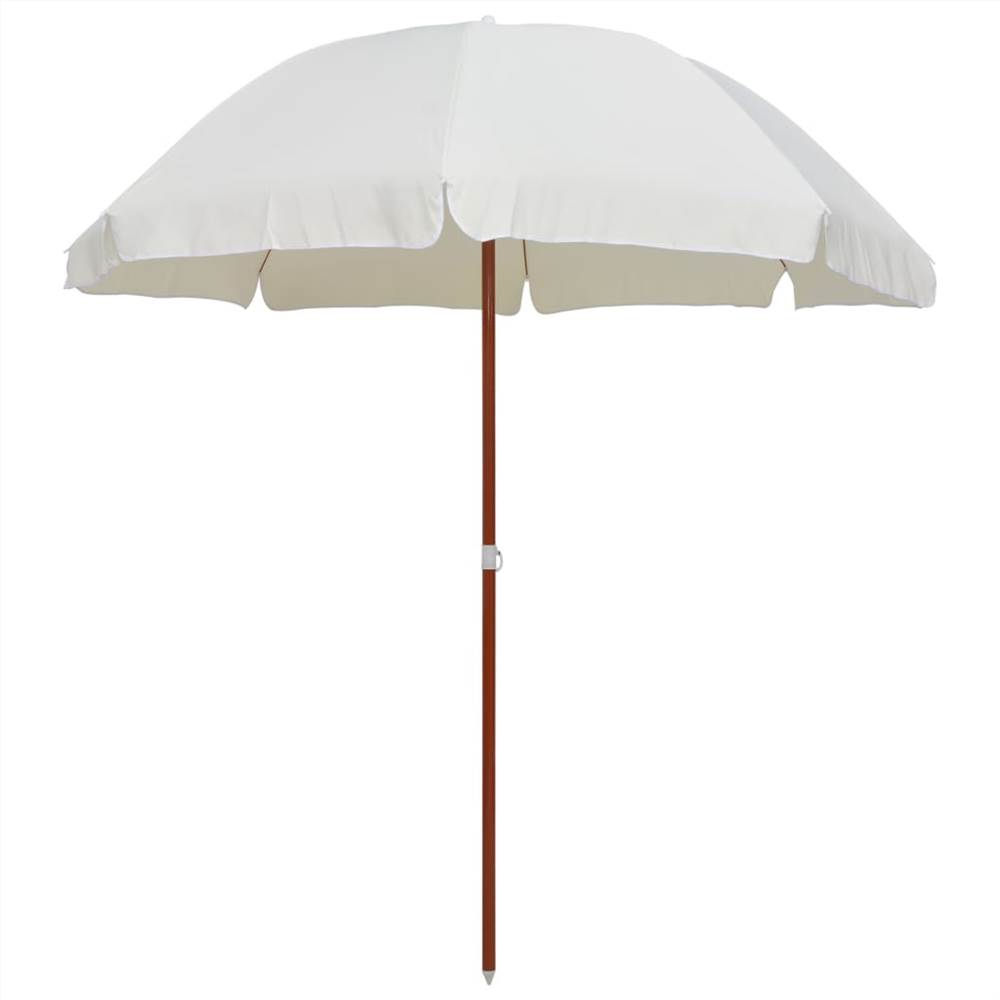 This elegant parasol protects you from the sun’s harmful UV rays and creates perfect shade as well. It is made of UV protective and anti-fade polyester. The parasol cover provides you with optimum protection against the sun and is easy to clean. The strong steel pole with wood-colour coating and 8 ribs makes the parasol stable and durable. Please note that we recommend treating the umbrella fabric with a waterproofing spray if it is likely to be used during heavy rainfall.