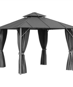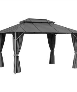 Gazebo With Sliding Roof Poly Rattan 400x400x200 Cm Grey And Anthracite