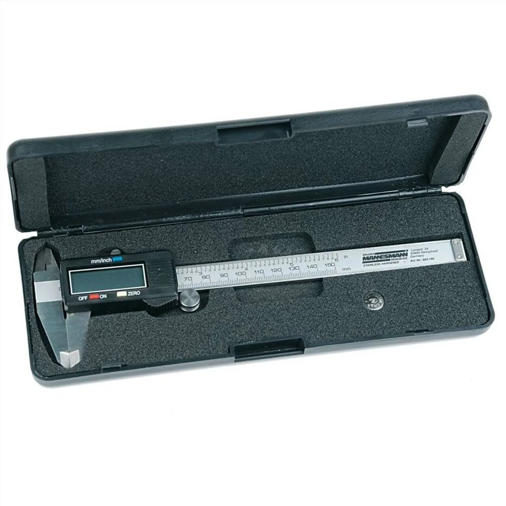 The electronic vernier caliper with digital read-out from Brüder Mannesmann is perfect for tasks where extremely accurate measurements are needed. This digital caliper, which measures in both mm and inches, is equipped with a large LCD display with 5 positions, depth sensor, locking screw and automatic shutdown.The Brüder Mannesmann digital vernier caliper has a measuring range between 0 and 150 mm, with a precision of 0.02 mm.