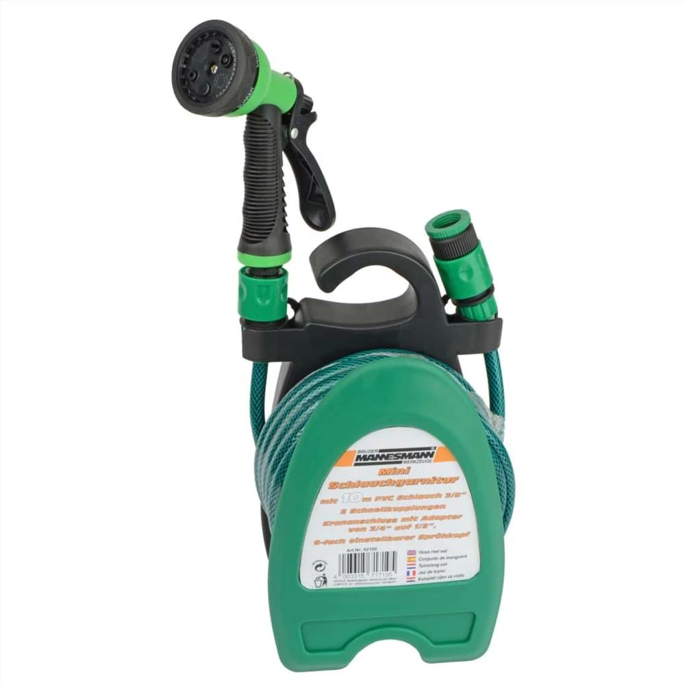 This Mini Garden Hose set from Brüder Mannesmann is an ideal choice for irrigating your garden. This water hose is made of PVC material, hardwearing and durable. This hose set is perfect for small garden and balcony with adjustable spray gun with 6 positions, 2 quick couplings and adapter, all in a handy plastic holder. The hose has a length of 10 m, making it extra practical and allowing you to irrigate your garden easily!