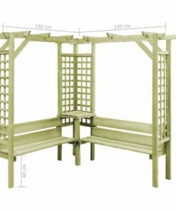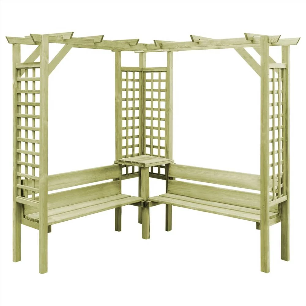 Our high-quality wooden pergola will add a touch of natural charm to your garden, patio or backyard. Crafted from high-quality green impregnated pinewood, our garden pergola is very sturdy, durable, and weather resistant. The garden arbour forms a stable place for roses and other climbing plants, which will surely become the focal point of your garden. The integrated bench provides seats for you to enjoy beautiful garden scenery. Our garden pergola is easy to assemble. Please note that wood is a natural product and may show imperfections.