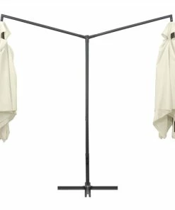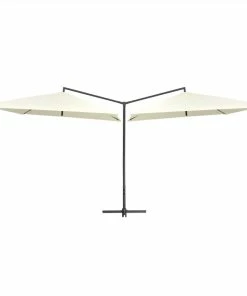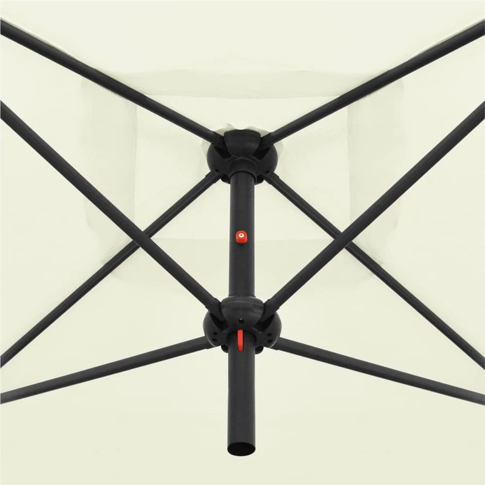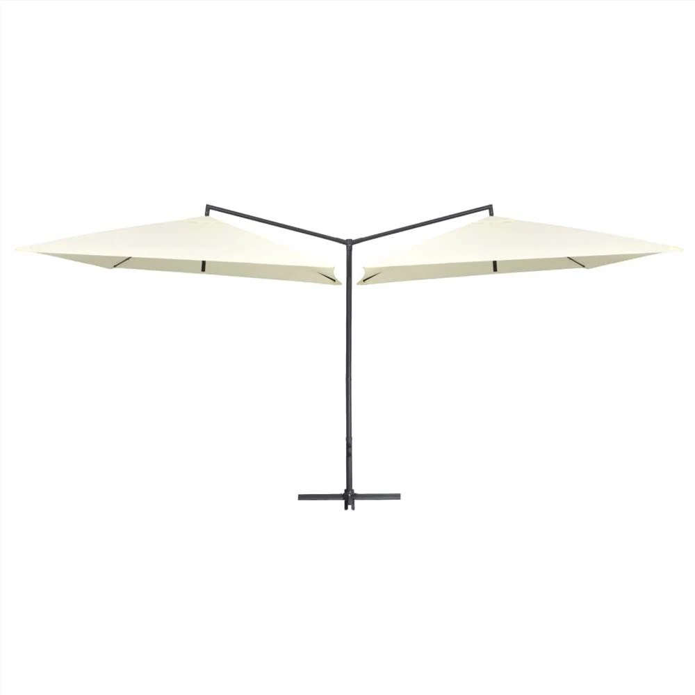 This elegant double parasol is perfect to create some shade and protect you from the sun’s harmful UV rays. The distinctive double umbrella design will make it the eye-catcher in your backyard! Made of UV protective and anti-fade polyester, the parasol cover provides you with optimum protection against the sun and is easy to clean. It comes with a sturdy cross base to add stability. The strong powder-coated pole, along with the solid ribs, makes the parasol very stable and durable. Our garden umbrella can be easily opened and closed thanks to the crank mechanism. The item is easy to assemble. NOTE: This product should NEVER be used under bad weather, such as strong wind, heavy rain, snow, storm, etc