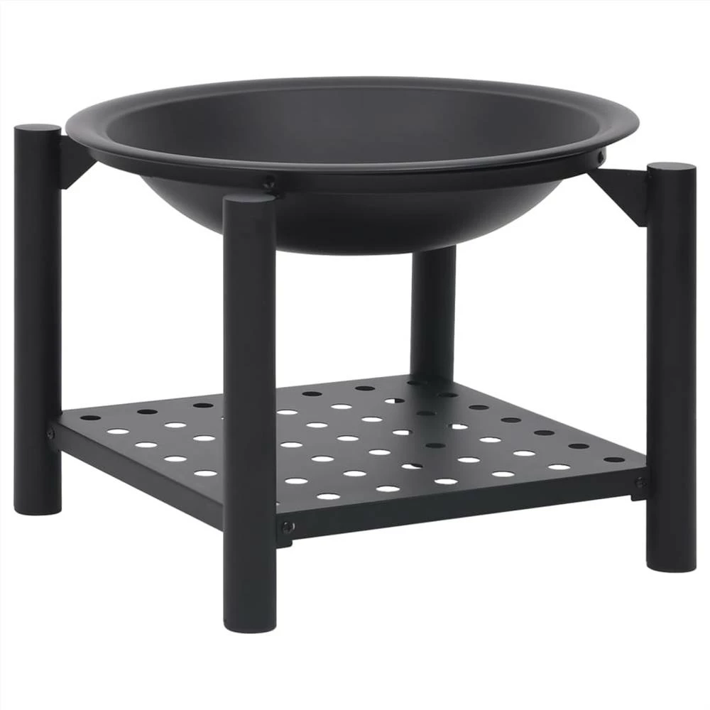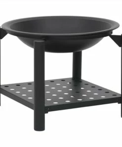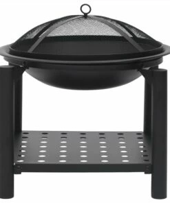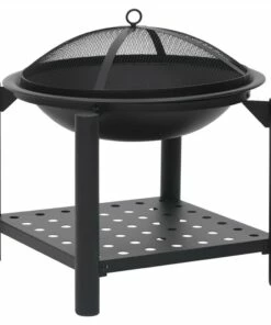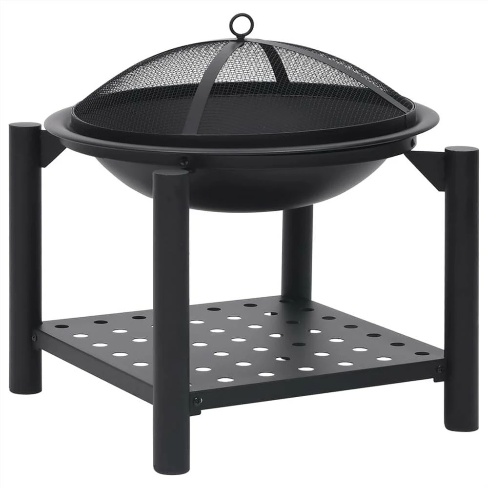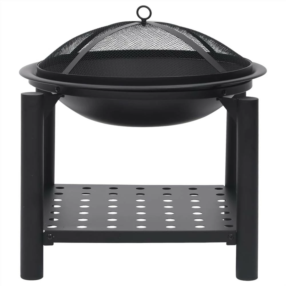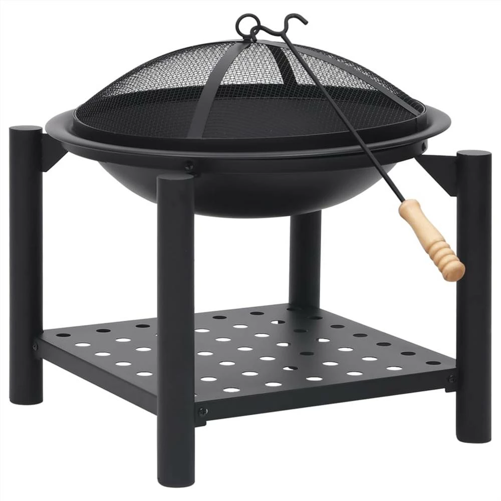 This fire pit will make a decorative and atmospheric addition to your garden or patio, while also keeping you warm when it gets colder in the evening. Made of steel, the fire pit is excellent in absorbing and radiating heat. Featuring a large bowl, this fireplace allows for a large fire for you and your family to enjoy for hours. The mesh allows you to watch the burning fire, and encloses the fire for safety as well as preventing sparks and debris from flying out. Additionally, there is a convenient ring in the mesh cover so that you can carry it easily. The included poker can be used for both removing the mesh cover and rearranging the logs. What’s more, the shelf provides additional storage space to put more firewood. Important notes: It can only be used outdoors. To avoid injuries and burns, do not touch the product when there is still burning wood inside or shortly after it.