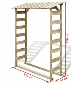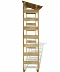 This wooden firewood storage shed presents an efficient solution to store a large quantity of logs. This firewood storage shed is made of high-quality, pressure impregnated pinewood, which makes it very sturdy, durable, and rot resistant. The shed has a sloped roof to protect the firewood from rain and snow, slatted sides that allow sufficient air circulation, and raised floor slats to keep them ventilated and dry. Assembly is easy. Please note that wood is a natural product and can show imperfections.
