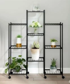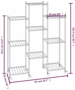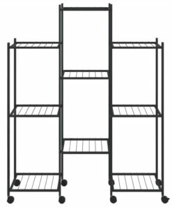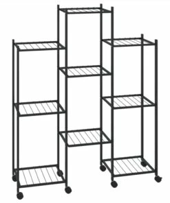 This flower stand is an ideal solution for keeping and displaying your plants and various other items. Premium material: This corner plant shelf is made of iron, which is durable and maintenance free, ensuring years of service. Strong and sturdy frame: The iron frame of the plant stand ensures sturdiness and stability.Useful shelf: The plant rack provides commodious space for displaying your lovely plants. It can also serve as a display rack, storage shelf, etc.Flexible design: It is easy to move around with the equipped wheels.