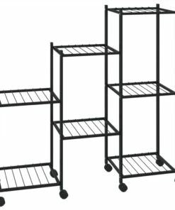 This flower stand is an ideal solution for keeping and displaying your plants and various other items. Premium material: This corner plant shelf is made of iron, which is durable and maintenance free, ensuring years of service. Strong and sturdy frame: The iron frame of the plant stand ensures sturdiness and stability.Useful shelf: The plant rack provides commodious space for displaying your lovely plants. It can also serve as a display rack, storage shelf, etc.Flexible design: It is easy to move around with the equipped wheels.