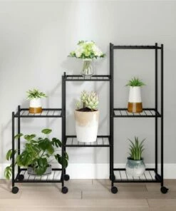 This flower stand is an ideal solution for keeping and displaying your plants and various other items. Premium material: This corner plant shelf is made of iron, which is durable and maintenance free, ensuring years of service. Strong and sturdy frame: The iron frame of the plant stand ensures sturdiness and stability.Useful shelf: The plant rack provides commodious space for displaying your lovely plants. It can also serve as a display rack, storage shelf, etc.Flexible design: It is easy to move around with the equipped wheels.