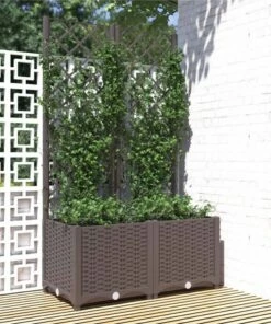 With this garden planter with trellis, you can decorate the entrance, balcony, terrace and garden with beautiful plants. This planter is made of weather-resistant PP, strong and sturdy, and suitable for outdoor use. The bottom box can accommodate a large number of green plants and flowers. The integrated trellis offers great support for growing climbing plants such as tomatoes, peas, and roses.