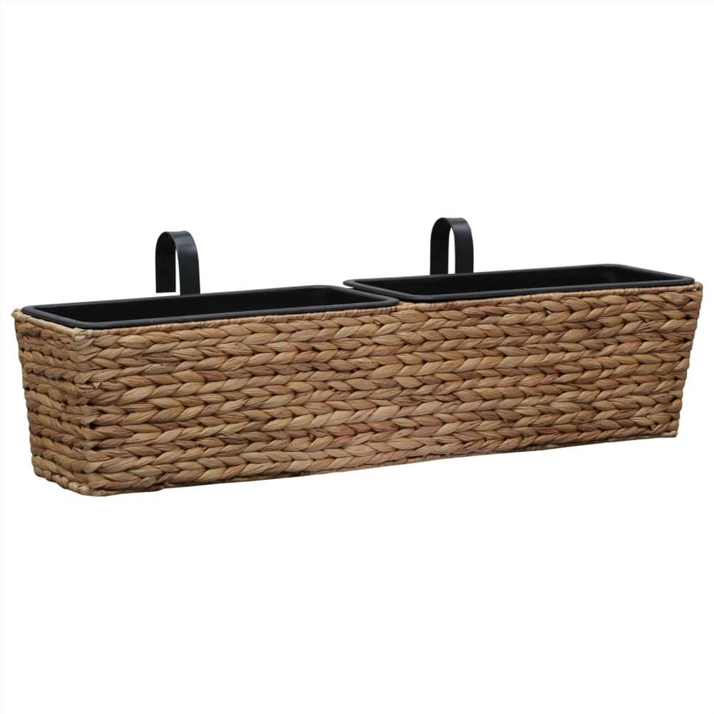 This adorable garden planter set consists of 2 water hyacinth planters and 4 removable pots. Made of highly durable water hyacinth, this planter will be a real attention-grabbing addition to your outdoor space. They will fit most of your windowsills or balcony railings. Its tight weaving structure and two metal holders produce a smooth finish and great stability. Additionally, equipped with 2 plastic containers inside, this planter set will ensure a long service life. All kinds of lively green plants and flowers can be well placed into the pots. Get ready to have some fresh air from your garden, terrace and balcony with our glamorous planters! Delivery includes 2 planters with 4 removable pots.