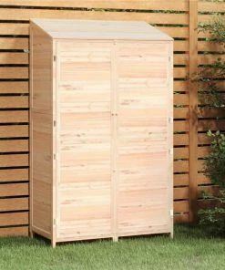 This wooden garden shed makes a great addition to any backyard, lawn, and other outdoor space. Solid fir wood: Solid fir wood is a beautiful natural material. Fir wood doesn’t dry out or warp when exposed to moisture.Ample storage space: The outdoor storage shed is ideal for holding various garden tools, lawn care equipment, household items, and other garden accessoriesSturdy frame: The wooden frames ensure sturdiness and stability. The garden shed offers protection from dirt, dust, strong wind and harsh weather. Warning:In order to prevent overturning, this product must be used with the wall attachment device provided.