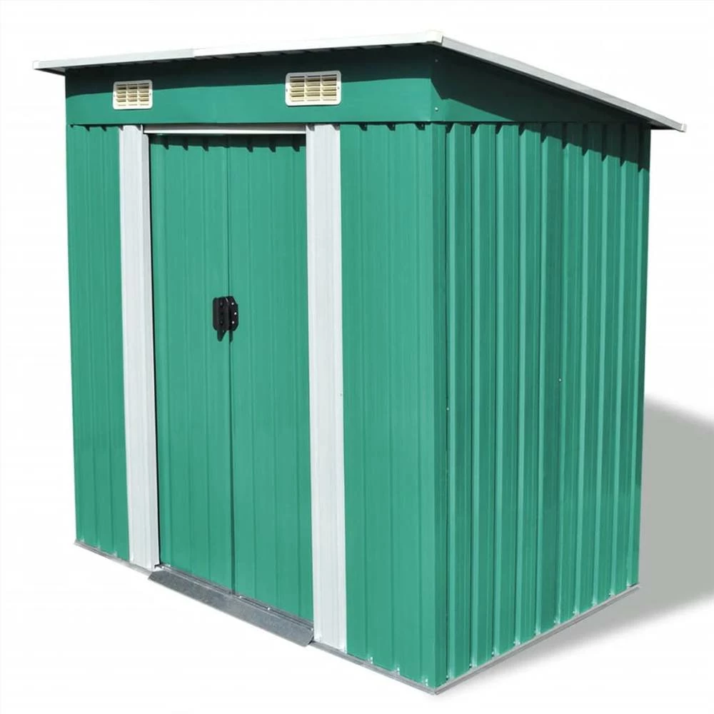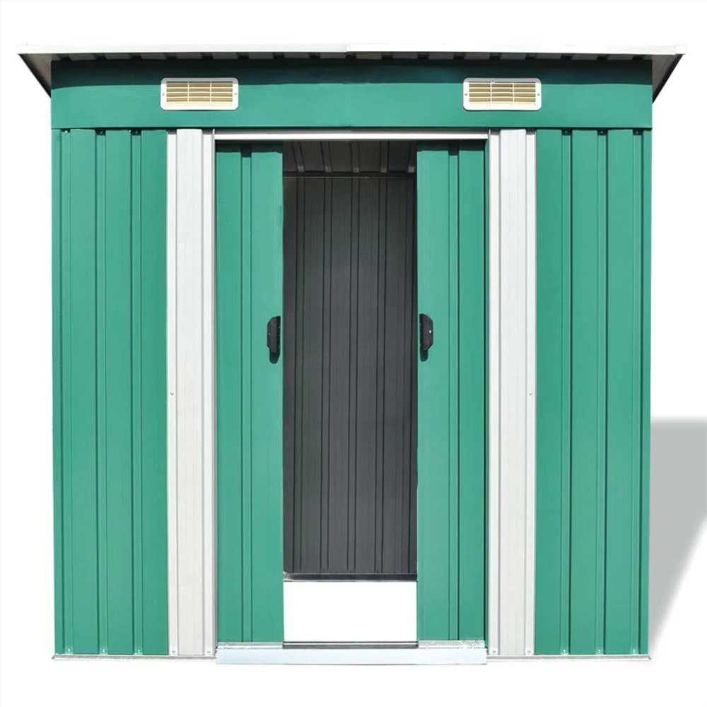 This metal storage shed will be perfect for storing a wide variety of tools and equipment. This storage shed has 2 vents in the front, ensuring excellent ventilation. The double sliding doors in the front allow easy entry and exit. The galvanised steel construction, along with a zinc-coated finish, makes it durable and strong, so it won’t corrode or be affected by extreme weather. It also includes a steel floor frame which adds stability and is perfect for a wood floor finish (wood not included). The pre-cut, pre-drilled parts and the included instruction manual ensure fast and easy assembly.