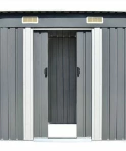 This metal storage shed will be perfect for storing a wide variety of tools and equipment. This storage shed has 2 vents in the front, ensuring excellent ventilation. The double sliding doors in the front allow easy entry and exit. The galvanised steel construction, along with a zinc-coated finish, makes it durable and strong, so it won’t corrode or be affected by extreme weather. It also includes a steel floor frame which adds stability and is perfect for a wood floor finish (wood not included). The pre-cut, pre-drilled parts and the included instruction manual ensure fast and easy assembly.