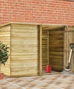 Expand your outdoor storage possibilities with our space-saving wooden shed. This shed is surprisingly roomy, offering storage solution for your bikes, outdoor toys, pool equipment and accessories and also garden equipment including hoses, spade, pots, lawnmower, etc. Built with quality impregnated pinewood, this shed is durable and weather resistant. Its roof is covered with asphalt felt, which protects the shed against moisture. It comes with double door design for easy access. Additionally, double door with latch design provides added security. This storage shed is easy to assemble. Anti-tipping over kits are included in delivery.