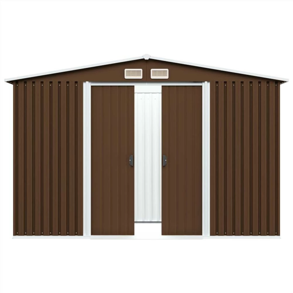 This metal storage shed will be perfect for storing a wide variety of tools and equipment. This storage shed is equipped with vents, ensuring excellent ventilation and reduce the accumulation of moisture and odor in the house. The double sliding doors in the front allow easy entry and exit. Thanks to corrosion-resistant galvanised steel, the tool shed is sturdy and durable, and built to last. It also includes a steel foundation which adds extra stability. The pre-cut, pre-drilled parts and the included instruction manual will help achieve fast and easy assembly.