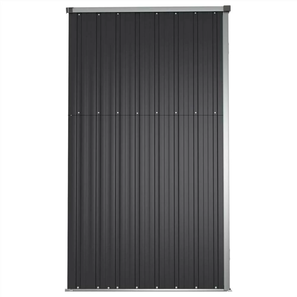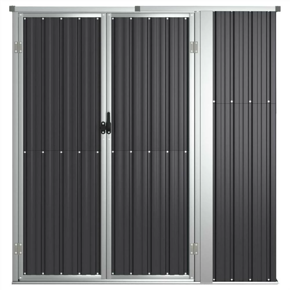 This garden tool shed is a valuable storage space for keeping your garden tools and accessories organised and within easy reach. Large and organised space: This tool shed is perfectly designed for various garden tools, lawn care equipment, pool supplies, and long-handled tools such as brooms, rakes, etc.Premium material: The galvanised steel and metal frames ensure sturdiness and stability. And the storage house requires minimal maintenance.Good security: The plastic handle with a lock function ensures the safety of your item.Sloping design: The rainwater automatically drains from the roof.