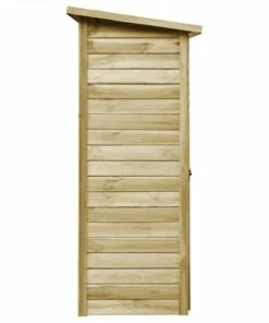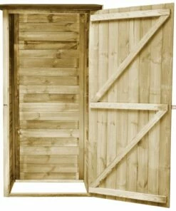 This wooden tool shed, featuring a simple design and a rustic look, can fit any garden area. The high-quality tool shed provides a large space for storing a wide variety of tools and equipment. Crafted from high-quality, impregnated pinewood, this shed is solid, durable and weather resistant. The door is designed for easy access and exit. This storage shed is easy to assemble. Please note that wood is a natural product and may show imperfections.