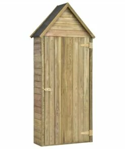 Is your garage cluttered with garden tools, lawn car equipment or other household essentials? This wooden tool shed is the optimal choice for you. Built with quality impregnated pinewood, this shed is exceedingly durable and weather resistant. Its roof is covered with asphalt felt, which protects the shed against moisture. The shed includes 4 large shelves so that you can store your watering can, rakes, shovels or other garden tools, as well as other items and keep them neat and organised. The single door is designed for easy access and exist. This storage shed is easy to assemble.