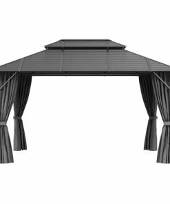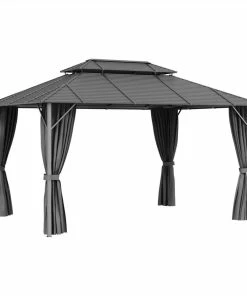 Add much-needed shade and privacy to make your outdoor living space more enjoyable with this gazebo! Premium material: The garden gazebo is made of powder-coated steel. Hence, it is very sturdy and durable. The sidewalls are made of 100% polyester with PA coating, which is water-resistant and can block the most harmful rays.Special roof: With 2-tier steel roof, this gazebo not only offers protection from excessive sun and rain, but also keeps the water out and provide better ventilation. Besides, the double-tiered roof is stylish and enhances your outdoor space.Sidewalls for protection: The sidewalls are included for full protection, giving you added privacy while keeping annoying mosquitoes and other insects away. The removable sidewalls make it easy to switch between an open setup and a more private shelter.Wide application: This marquee is ideal for all kinds of outdoor events, such as weddings, parties, gatherings, and so on. Note:This product should NEVER be used under bad weather, such as strong wind, heavy rain, snow, storm, etc.