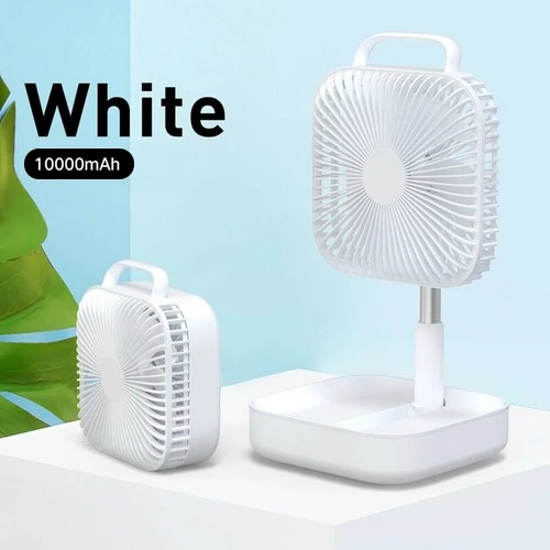 GoZheec Smart Portable Folding Fan Adjustable Angle Mute Shaking Head Four Modes 10000mAh Battery Removable Cleaning For Office Outdoor Summer Cooling – White