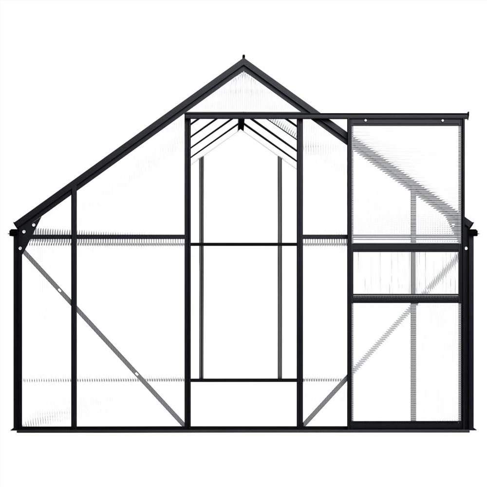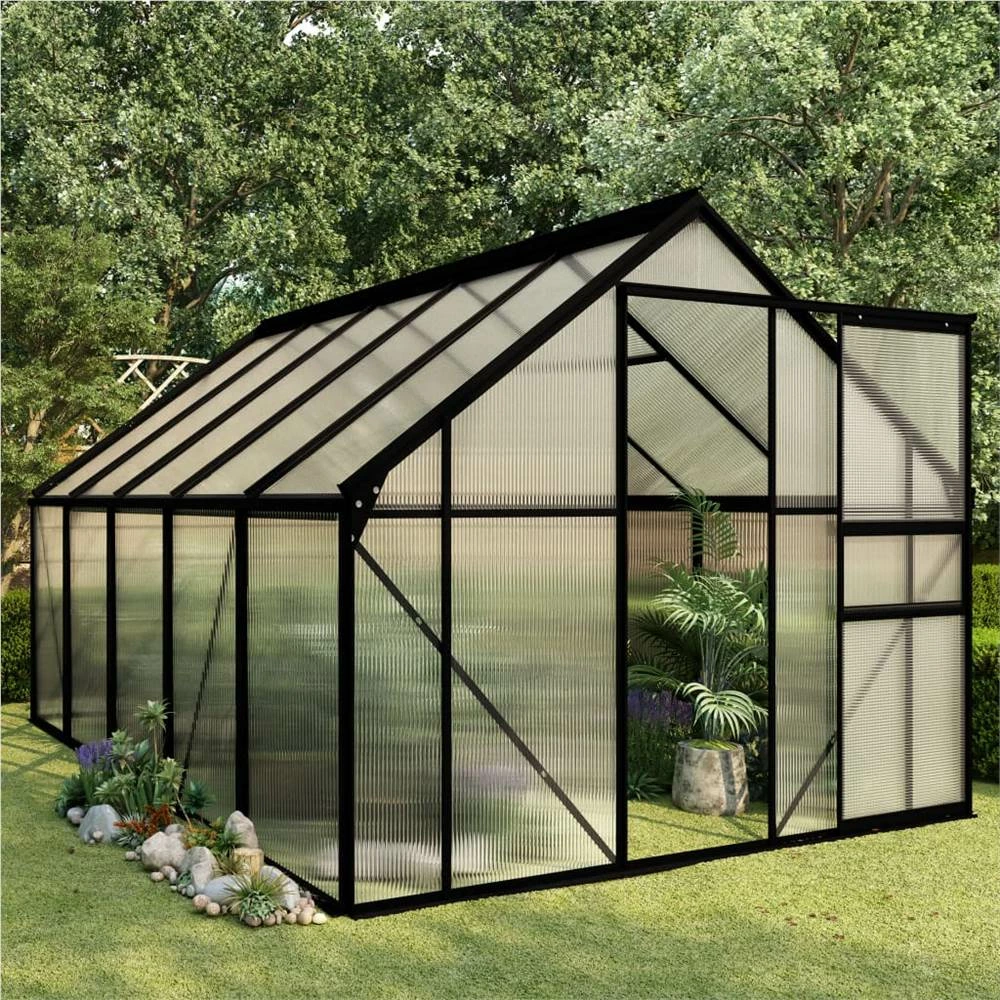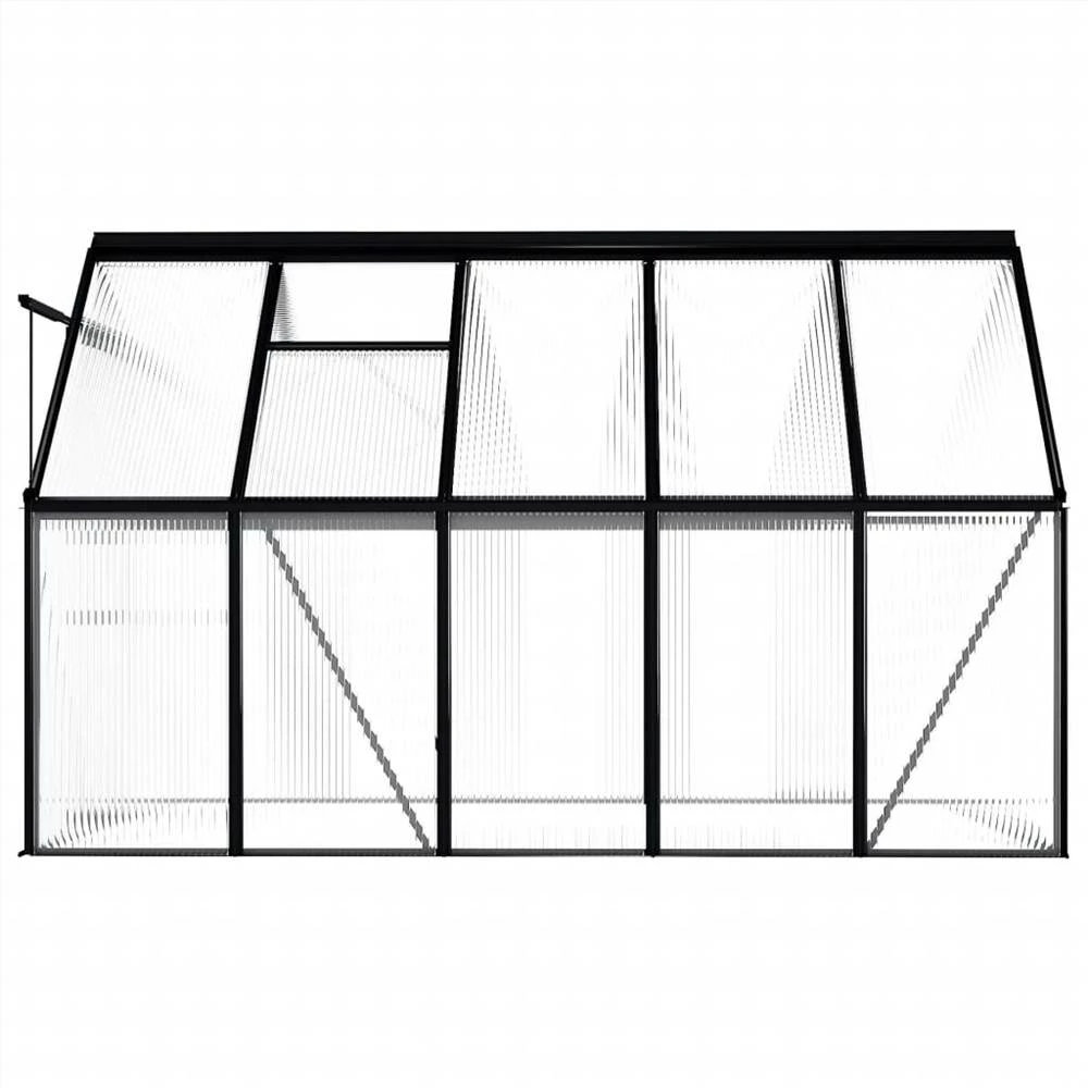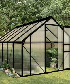 This spacious greenhouse has a total surface of 5.89 m². It can accommodate a considerable number of plants, and will be a great solution for protecting your plants from the cold weather. Made of polycarbonate panels, this solid greenhouse is UV resistant and thermally insulated. The greenhouse has a sturdy and maintenance-free aluminum construction for extra stability. The gutter system effectively allows water drainage, and the roof vent ensures optimal ventilation on hot days. Roof panels are fixed with metal clips, ensuring its durability and long-term use. Our greenhouse is easy to assemble. Please note the foundation is not included; and the roof of our greenhouse cannot withstand heavy snowfall.
