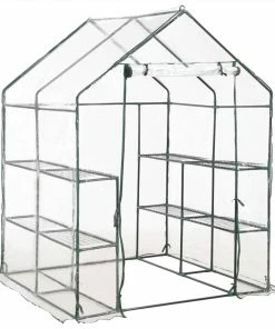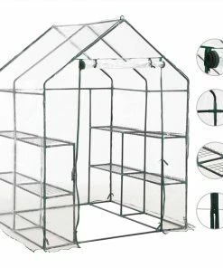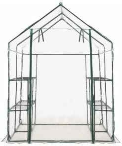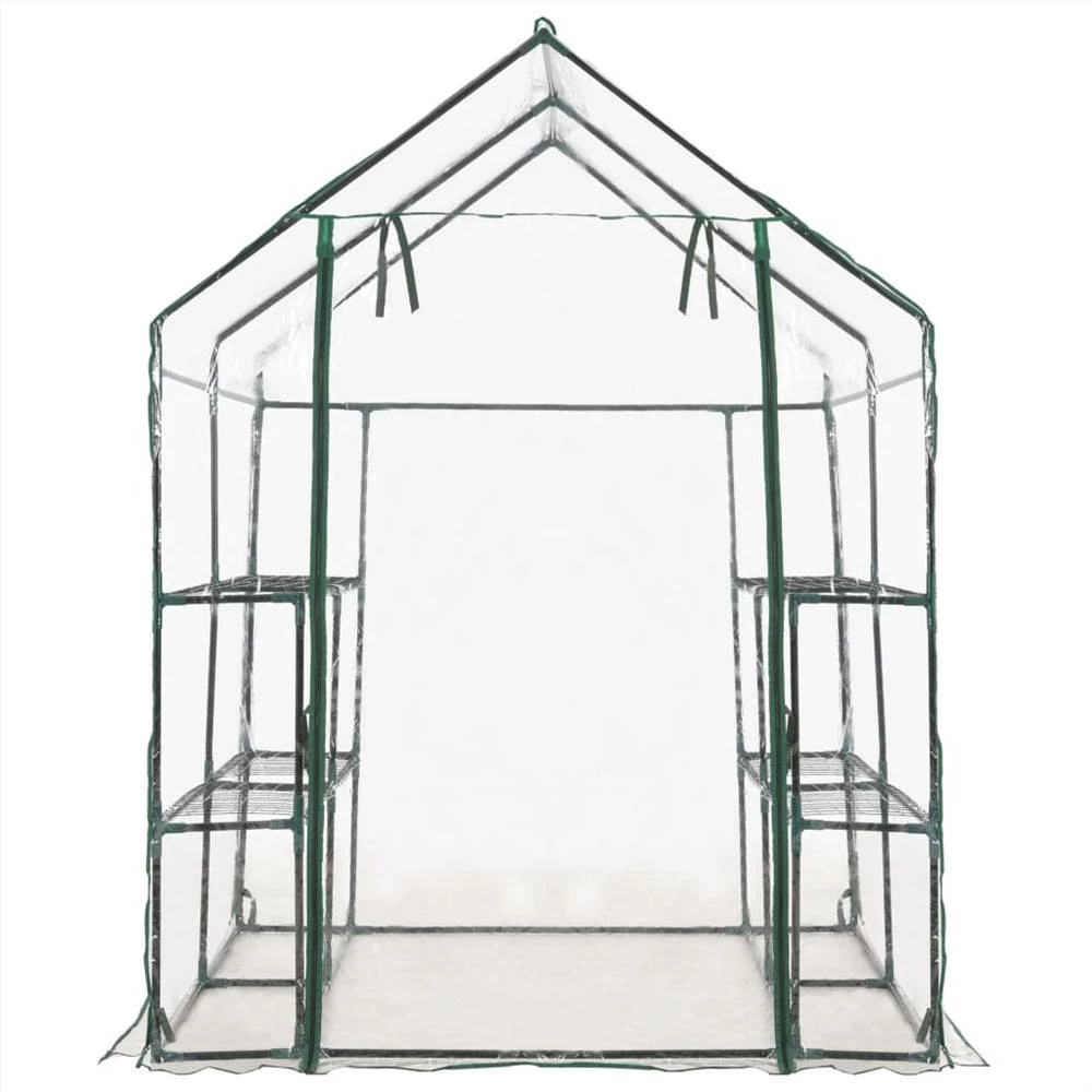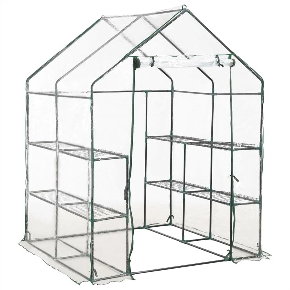 Extend your growing season with our greenhouse. It is ideal for both new and experience gardeners! This greenhouse is structured with rust-resistant sturdy steel frame and PVC film, which ensures superior durability and for long-lasting use. Constructed with 8 wired shelves (4 on each side), this greenhouse provides ample space for your sprouting plants, blooming flowers and fresh herbs and vegetables. The transparent plastic cover allows sunlight to reach the flowers and plants, also you can monitor your plants all the time. Designed with zippered roll-up door, it ensures well air circulation and easy access to your plants. The greenhouse is easy to set up or take down with no special tools required and easy to move and store when season shifts.
