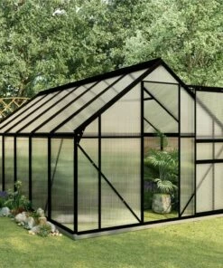 This spacious greenhouse has a capacity of 11.74 m³. It can accommodate a considerable number of plants, and will be a great solution for protecting your plants from the cold weather. Made of polycarbonate panels, this solid greenhouse is UV resistant and thermally insulated. The greenhouse has a sturdy and maintenance-free aluminum construction with a base frame (made up of 4 strong profiles) for extra stability. The gutter system effectively allows water drainage, and the roof vent ensures optimal ventilation on hot days. Roof panels are fixed with metal clips, ensuring its durability and long-term use. Our greenhouse is easy to assemble. Please note the roof of our greenhouse cannot withstand heavy snowfall.