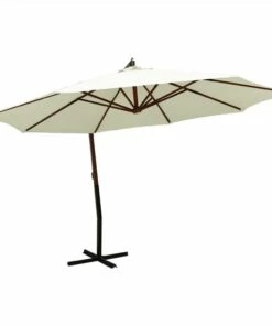 This trendy hanging parasol is perfect for creating some shade, making it a must when you enjoy your outdoor time. Premium material: Made of UV protective and water-resistant polyester, the parasol cover provides you with optimum protection against the sun and moisture.Stable frame: The garden parasol features a sturdy cross base to add stability. The strong solid hardwood pole, along with the 8 durable ribs, makes this garden parasol very stable and durable.Convenient operation: This garden umbrella is equipped with crank mechanism for open and close system. A hand-crank lift system allows you to adjust the shade and block the sun at all angles easily, keeping cool and comfortable.