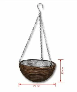 The hanging round willow basket is ideal for gardens, patios and balconies, but also can easily and quickly be hung in any inside room. Crafted from weather resistant willow and supported by metal frames, the hanging basket will ensure a long service life and maintain a tough and durable construction. The high-quality flower pot has a layer of plastic liner inside to prevent the leaking of water and earth. And coming with 3 sturdy chains, it can be hung from the ceilings, beside the windows or on some railings. All kinds of lively green plants and flowers can be well placed into the hanging willow basket. Delivery includes 4 pcs. Our hanging round willow basket is a true decorative highlight for planting flowers.