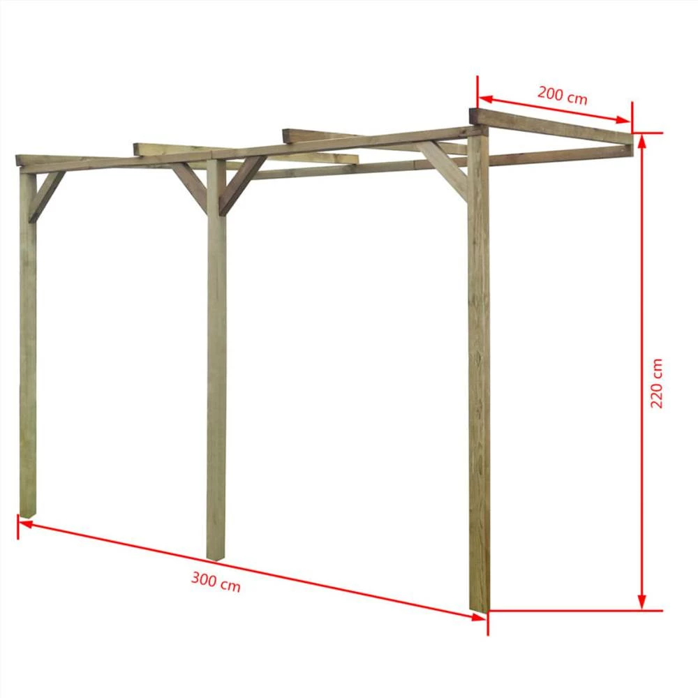 This wooden lean-to pergola will enhance the appearance of your home and form a decorative porch area where you can relax and entertain. It can also be used as a dining area or car port. Made of green impregnated pinewood, this wooden lean-to pergola is very sturdy, durable, and rot resistant. You can choose to cover the roof with polycarbonate panels, in which case the advantageous sloping design of the pergola’s roof will allow water to flow off. Assembly is easy. The accessories/screws needed for attaching it to the wall are not included in delivery. Please note that wood is a natural product and can show imperfections.