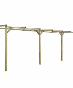 This wooden lean-to pergola will enhance the appearance of your home and form a decorative porch area where you can relax and entertain. It can also be used as a dining area or car port. Made of green impregnated pinewood, this wooden lean-to pergola is very sturdy, durable, and rot resistant. You can choose to cover the roof with polycarbonate panels, in which case the advantageous sloping design of the pergola’s roof will allow water to flow off. Assembly is easy. The accessories/screws needed for attaching it to the wall are not included in delivery. Please note that wood is a natural product and can show imperfections.