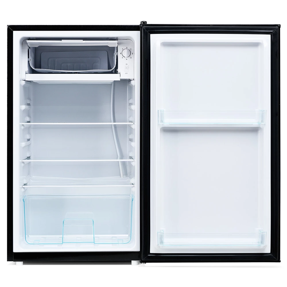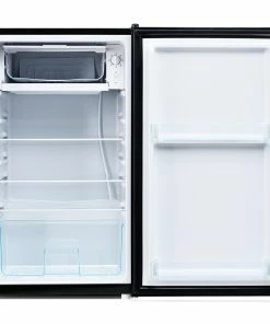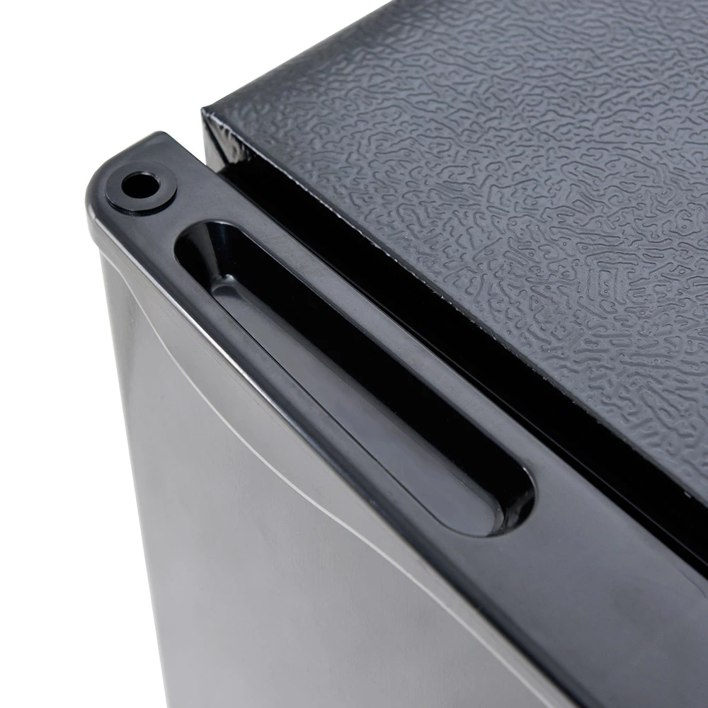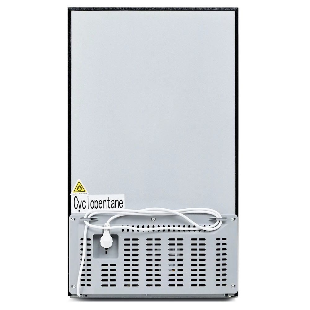 In black freestanding design, this refrigerator has a compact and cool shape. The dimension of this black refrigerator is 83.5*47*44.5, which is suitable for home scenario as a spare refrigerator to hold beverages and snacks in living room or beside the sofa. The interior has a capacity of 88 liters with an 8L frozen food storage compartment and is equipped with LED lights for uniform and non-blinding lighting.