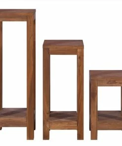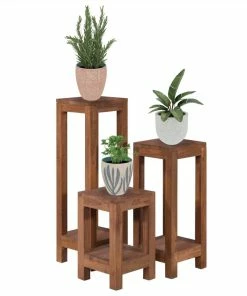 Showcase flowers or plants on these eye-catching solid teak wood plant stands! These plant stands constructed from teak hardwood, are seasoned, kiln-dried and fine sanded to give a very smooth appearance. Teak wood is known for its exceptional strength, making it far more suitable for furniture than any other kind of wood. Teak wood is the perfect choice if you want to purchase a long-lasting piece of furniture. The 1 underneath shelf provides extra storage space to store your essentials items. The versatile plant display stands are also used as bar stools. Important note: The beautiful colour and wood grains may vary from piece to piece, making each piece of wooden flower stands unique and slightly different from the next. We recommend to treat the product with teak oil or a waterbase finish to increase its lifetime.