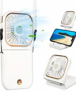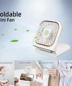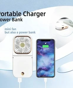 This portable Mini fan is foldable design.5 IN 1 as Power Bank, Phone Holder, Handheld Fan, Desk Fan, Neck Fan. It would be an everyday-carry-essential fan to cool you off in hot day and is multifunctional to satisfy your diverse needs.