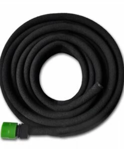 This flexible soaker hose is specially designed for garden watering and irrigation. Made of weather resistant material, the soaker hose ensures a long service life and excellent durability. With a length of 50 m, the soaker hose can be extended to the plants or crops and can water them evenly. It also features thousands of micropores – which prevents crushing and blocking of the hose and ensures the water to reach directly to the irrigated sites. The dropwise water discharge on the entire length of hose helps to save water. Moreover, the soaker hose can roll up as coils easily for storage and transport. The soaker hose is a perfect choice for domestic or commercial users. Note: Because of the water pressure, water will come out from the pores in the hose, resulting in a leaking effect. Just lay the hose on the ground and connect it to a water source.
