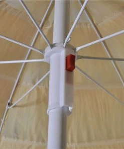 This all-weather beach umbrella has a diameter of approx. 1.8 m. Featuring a tilting design and a unique look, it is ideal for restaurants, beach clubs, beach bars as well as the garden at home. It can also make a decorative as well as functional addition to swimming pools, hotels or wellness facilities. The top cover consists of 5 individual mats that are fixed to the metal structure. The end segment covers the top of the umbrella. The powder-coated steel frame lend the entire structure stability and at the same time, a filigree look. The high-quality umbrella cover and polyester lining make this product all-weather resistant and durable. The umbrella can be tilted as required to effectively provide shade at different times.