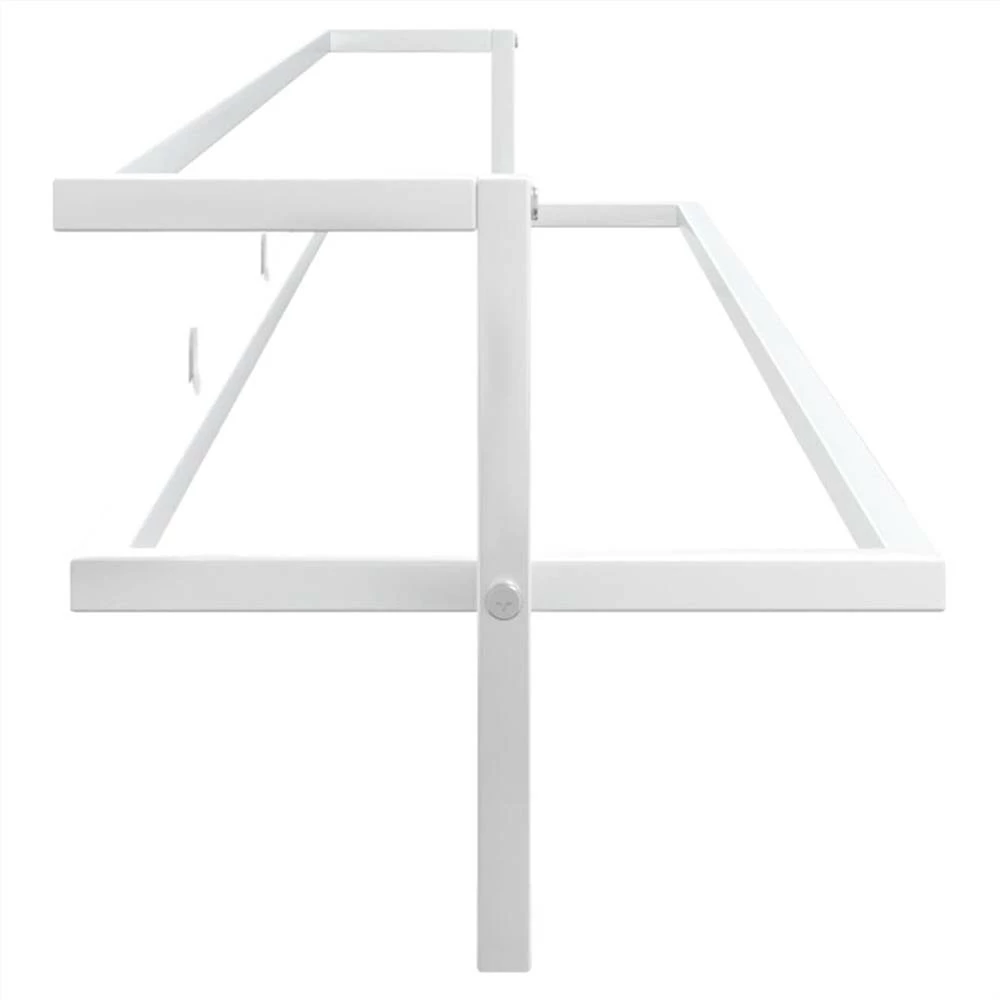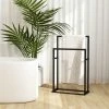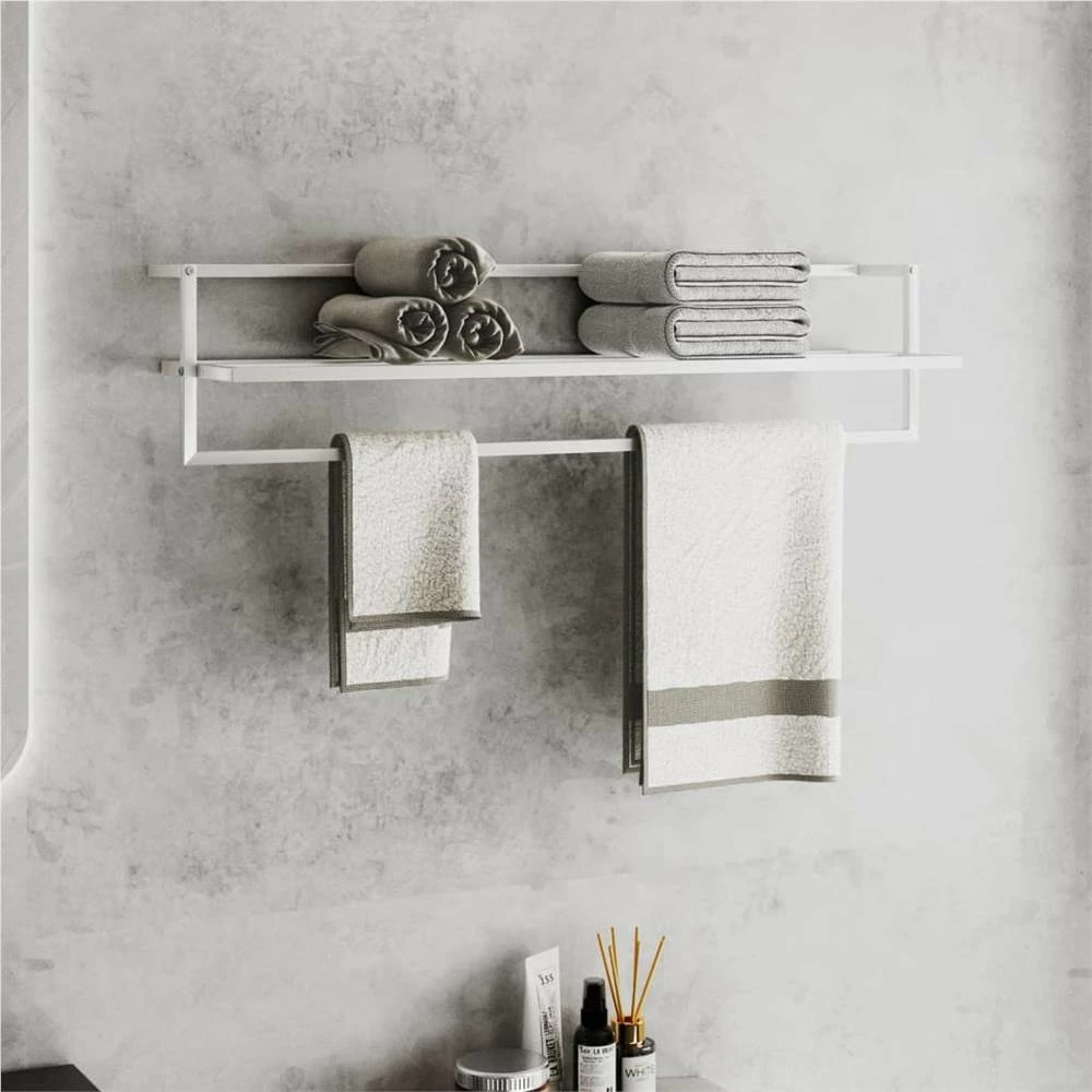 Maximise the space in your bathroom while adding stylish looks with this towel rack! Premium material: The iron frame of the towel holder ensures sturdiness and stability.Wall-mounted design: The towel hanger is wall-mounted to add extra storage space. That way, you can maximise your floor space and keep the area clean.Storage master: The wall rack, featuring a shelf, provides ample space for placing towels to help keep your bathroom clutter free.