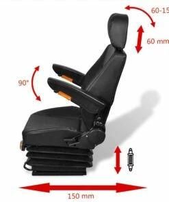 This open designed tractor seat offers increased comfort to you. Special foam is padded for more pleasant comfort. The sturdy suspension on this tractor seat ensures the smoothest possible ride on your tractor. The tractor seat is equipped with sliding track for easy and flexible installation. Suspension travel is designed to accommodate tractor weights from 50-130kg. A plurality of mounting holes on the base plate is designed for extra firmness. The black cover of the backrest tractor seat is very durable and waterproof. 150mm longitudinal adjustment provides more convenience and comfort. Headrest and foldable armrest are designed to be more relaxing for you.