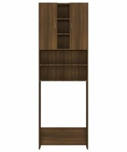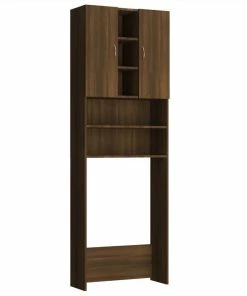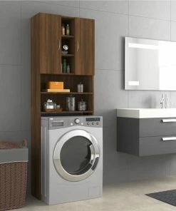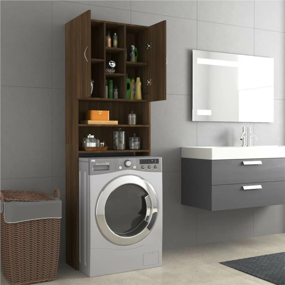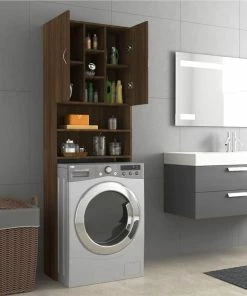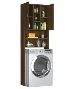 With this washing machine cabinet, you can create and optimally use additional storage space in the bathroom or laundry room. Premium material: The engineered wood is of exceptional quality with smooth surface and also features strength, stability and resistance to moisture.Ample storage space: The 2 doors and 9 compartments offer ample storage room for keeping your laundry utensils, cleaning supplies, toiletries and other items well organised and within reach.Space-saving function: This washing machine shelf can welly utilize the wasted storage area above the washing machine or toilet.Easy cleaning: This washing machine cupboard is easy to clean with a damp cloth. Note:Screw(s) and plug(s) for inside the wall are not included. Seek and use screw(s) and plug(s) suitable for your walls. If you are uncertain, seek professional advice. Read and follow each step of the instruction carefully. Warning:In order to prevent overturning, this product must be used with the wall attachment device provided.